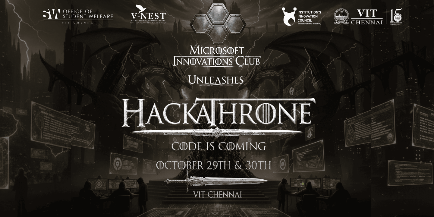 HackaThrone, the flagship national hackathon of VIT Chennai, powered by the Microsoft Innovations Club (MIC), is where visionaries step forward to build what others only imagine.